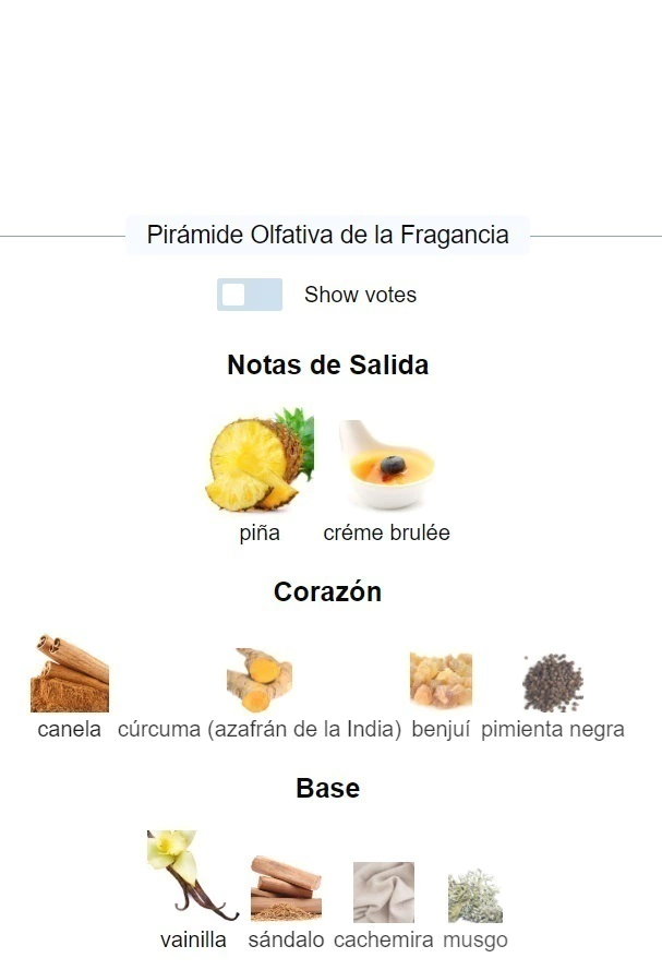 - Notas de salida: Azafrán y canela, ofreciendo una apertura cálida y especiada.